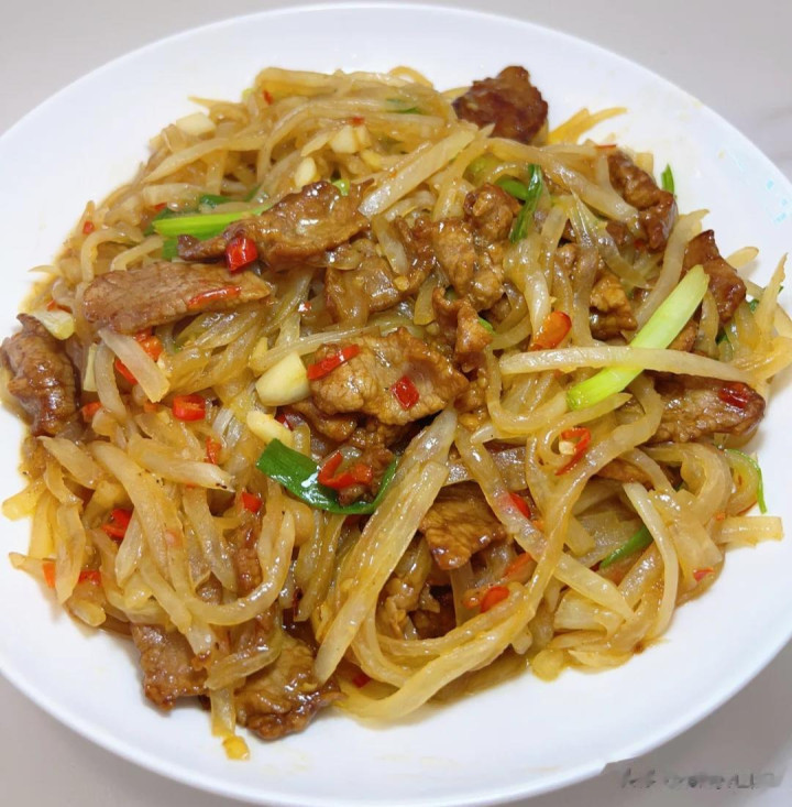 先用热油将牛肉丝炒至变色盛出。再下白萝卜丝翻炒至变软,这时不错加少量水匡助萝卜丝更快熟透。