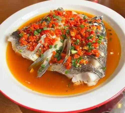 蒸煮入味:将加了剁椒酱汁的鱼头放回蒸锅,蒸15分钟即可出锅,撒上葱花增香。