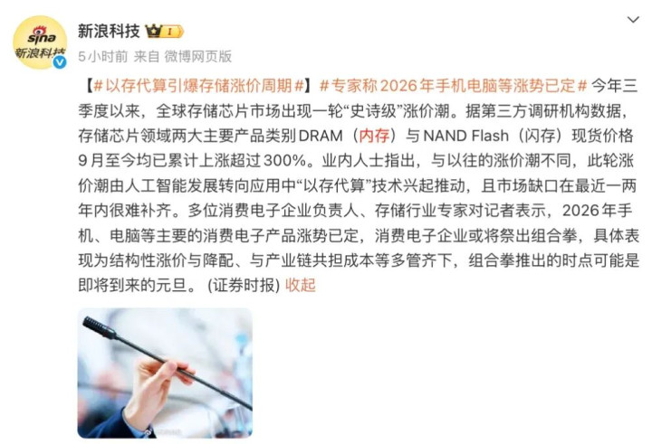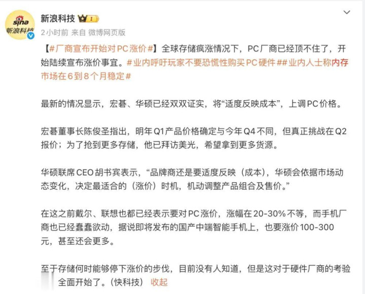 此前的行业预测觉得,内存加价在2027年有但愿缓解。但新浪科技最近的另一份音讯线路: